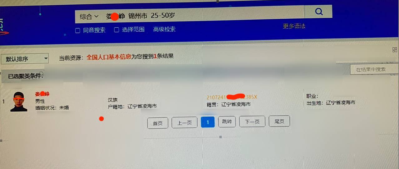 其他信息没有太多帮助,比如是否已婚,在哪工作,现在落户哪里,这些信息都无法找出他的唯一标识:身份证号码。